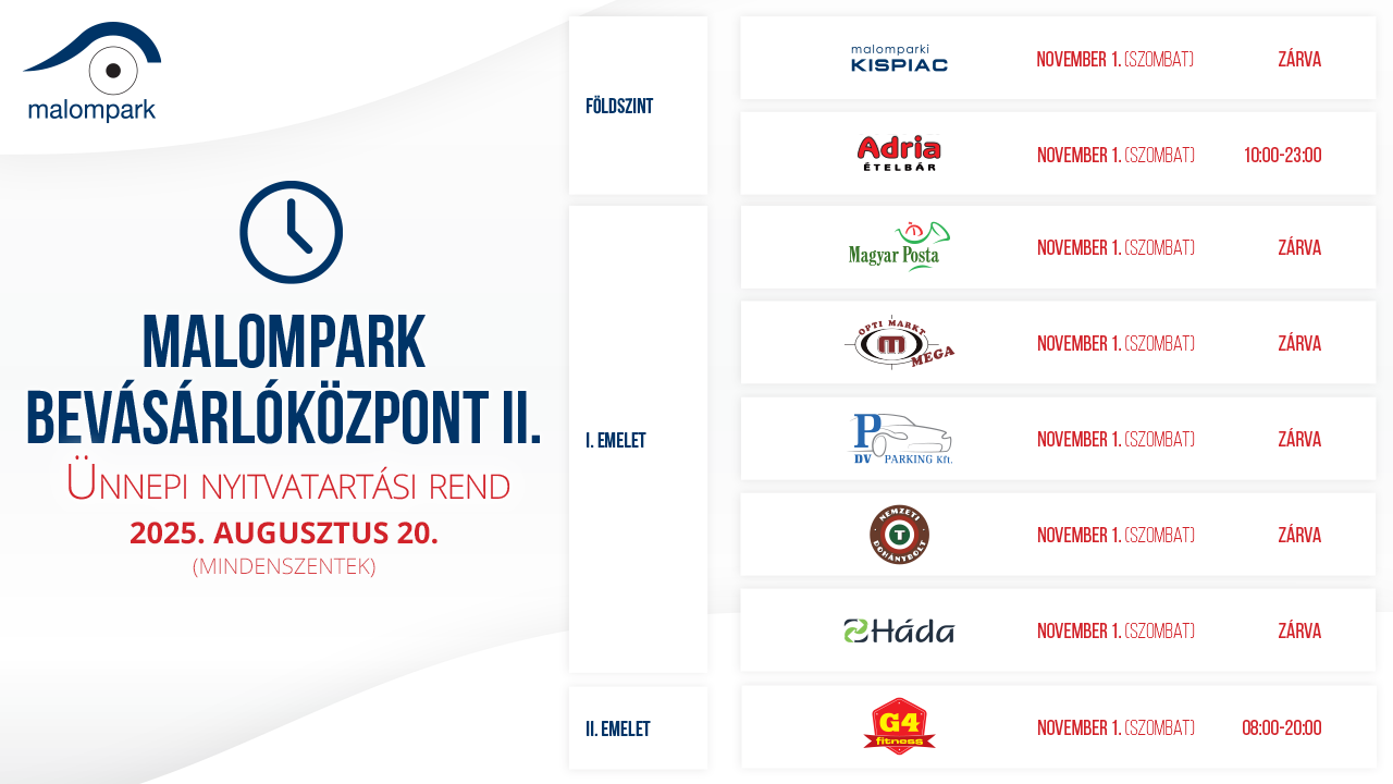 A Malompark Bevásárlóközpont ünnepi nyitvatartása