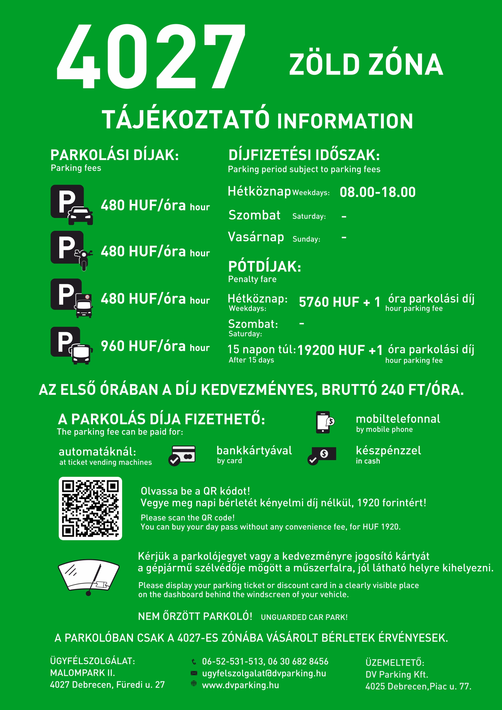 - A mozgáskorlátozott parkolási igazolvánnyal rendelkező személyek, valamint az őket szállító járművek parkolása a bevásárlóközpont arra kijelölt parkolóiban továbbra is díjmentesek.
